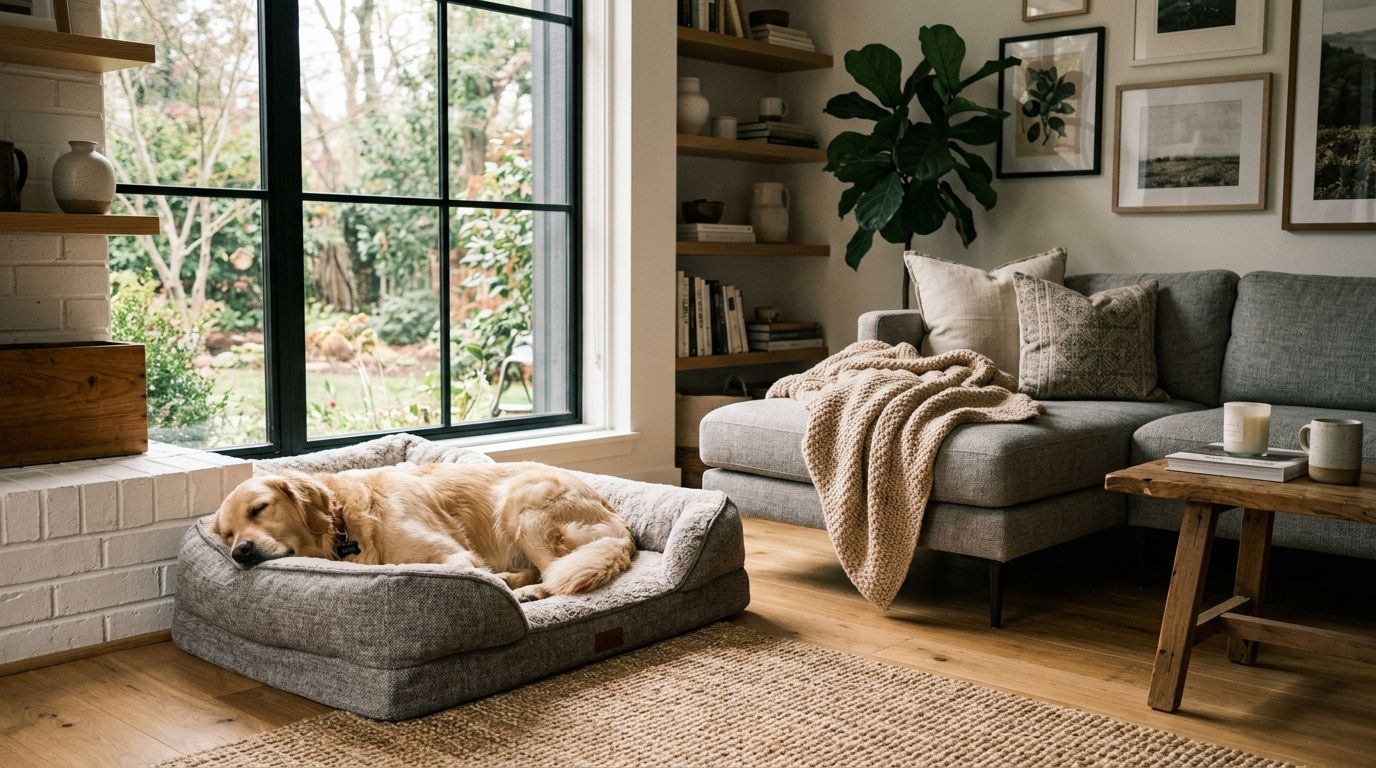 Your medium-to-large dog (up to 55 lbs) gets a 4-inch egg-crate foam core under a 3.5-inch U-shaped bolster. Ultra-soft insulating fleece holds her while the bolster supports head and neck on three sides. Unzip the cover for a cold-water wash; the waterproof layer protects the foam from accidents. Reviewers report no sag after three years of daily 40-lb body use. The 42-inch XL size handles dogs up to 85 lbs.